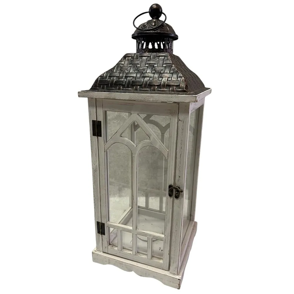 Střední dřevěná lucerna 24 x 24 x 61 cm bílá