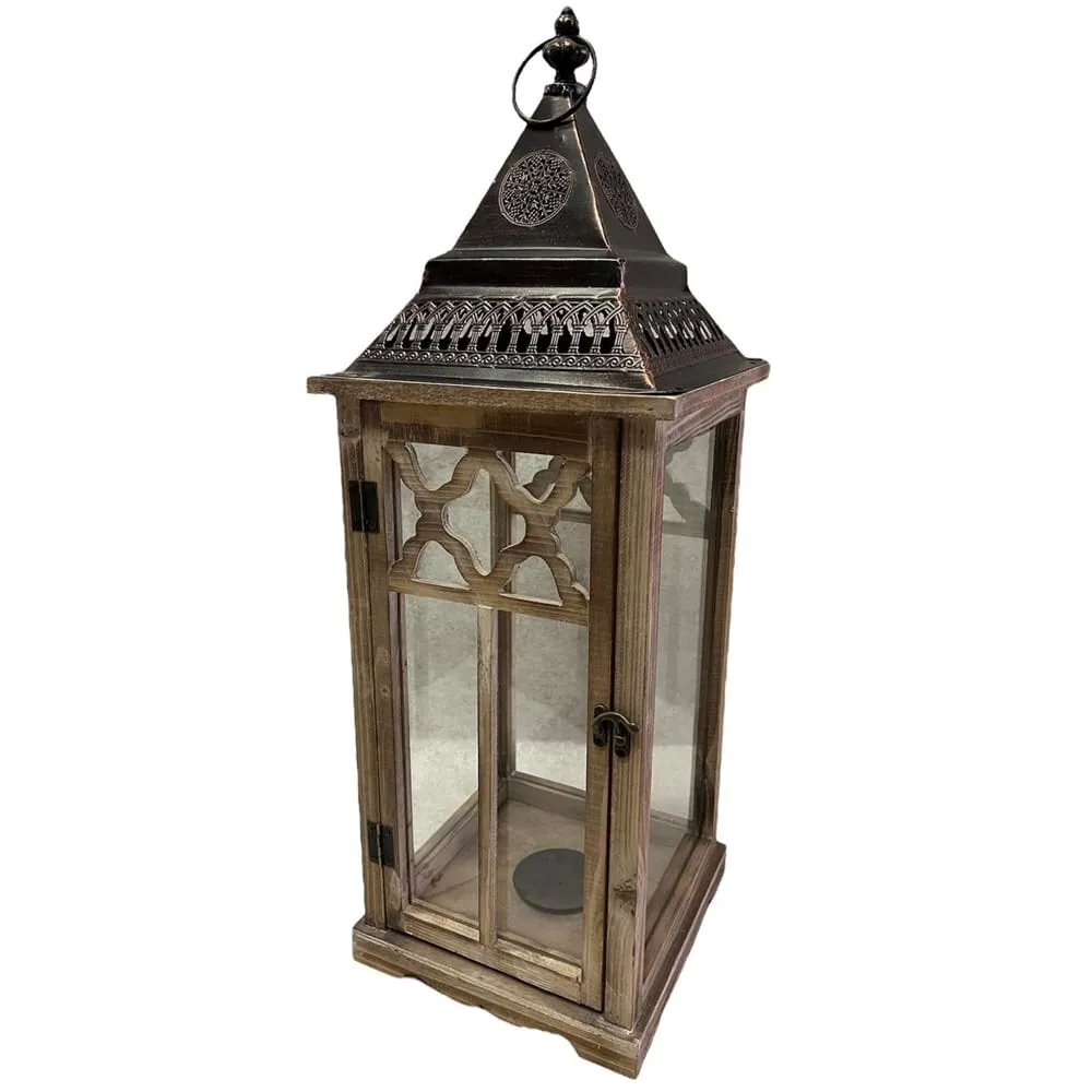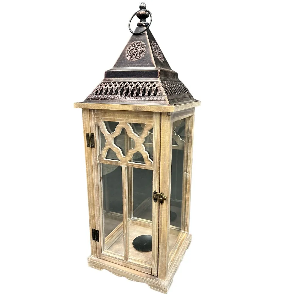 Střední dřevěná lucerna 24 x 24 x 66 cm světle hnědá