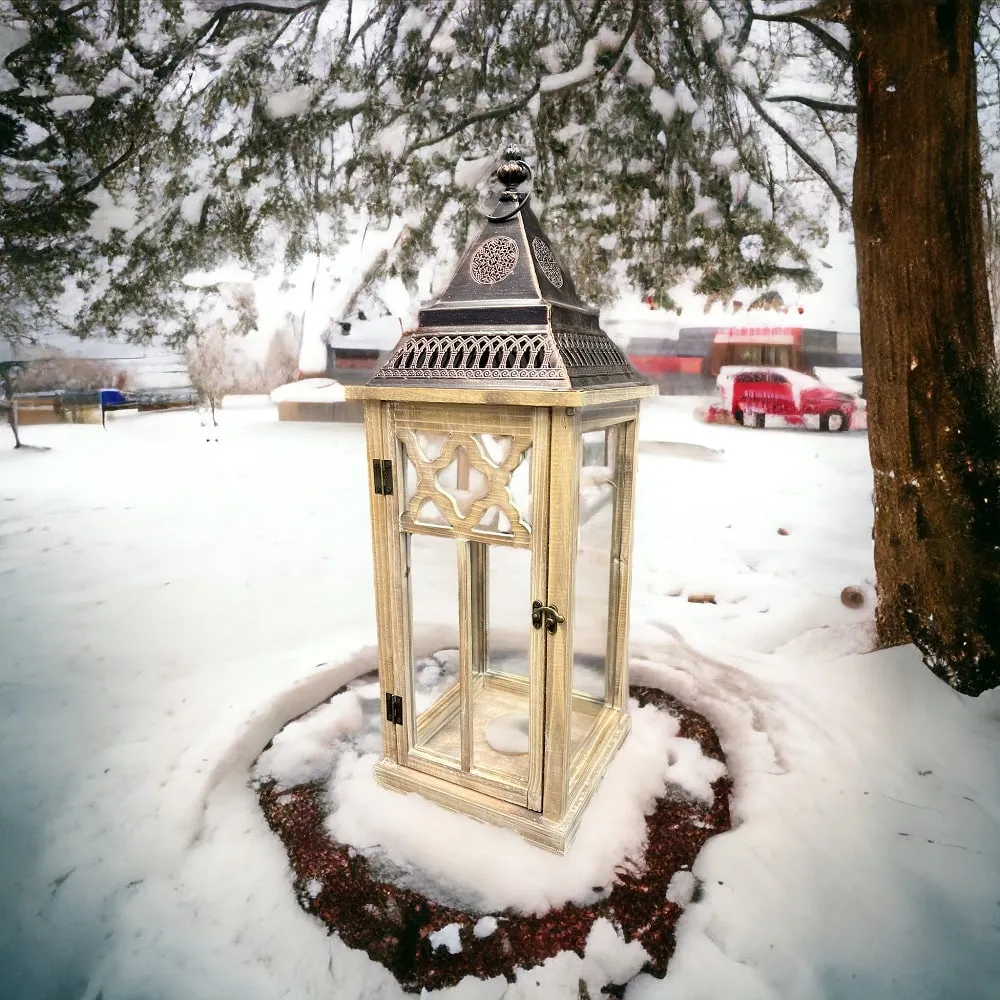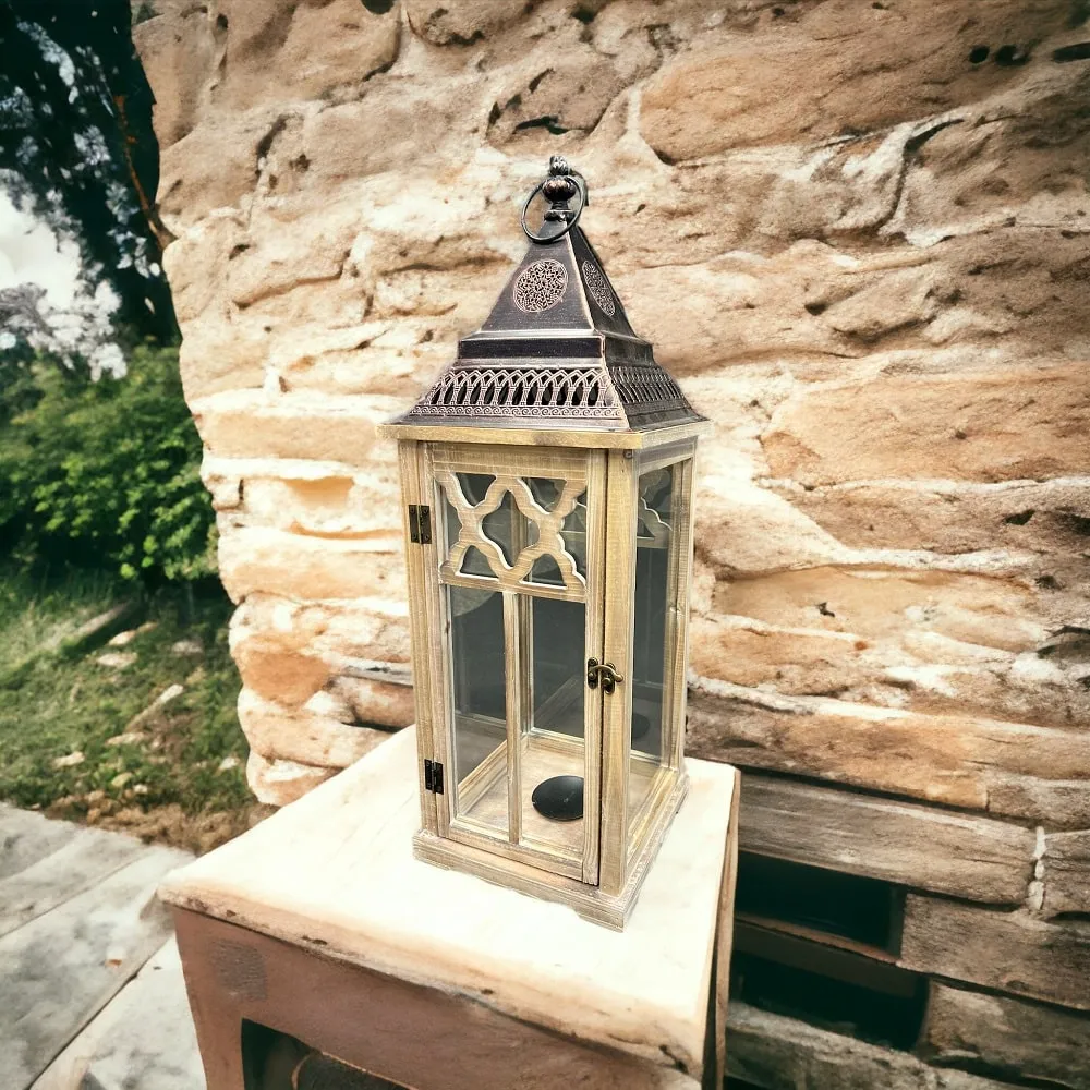 Díky kovové stříšce je naše lucerna odolná i proti nepříznivým povětrnostním podmínkám, což ji činí ideální volbou pro vnější prostory, jako jsou zahrady. V interiéru pak vytváří teplou a příjemnou atmosféru, ideální pro relaxaci nebo pro osvětlení speciálních příležitostí.