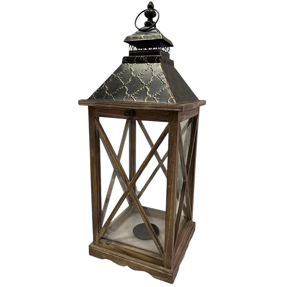Hnědá lucerna o výšce 60,5 cm, ideální pro dekoraci venkovních a vnitřních prostor...