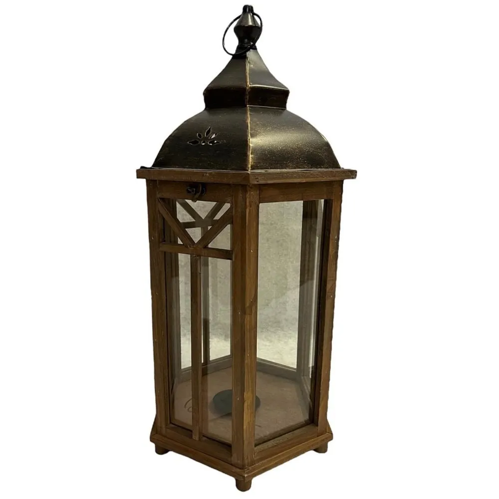 Střední lucerna s výškou 61 cm a rozměry 31 x 27 cm v hnědé barvě, skvělá pro venkovní i vnitřní prostory. Díky kvalitnímu zpracování zůstane dlouhodobě odolná a krásná.