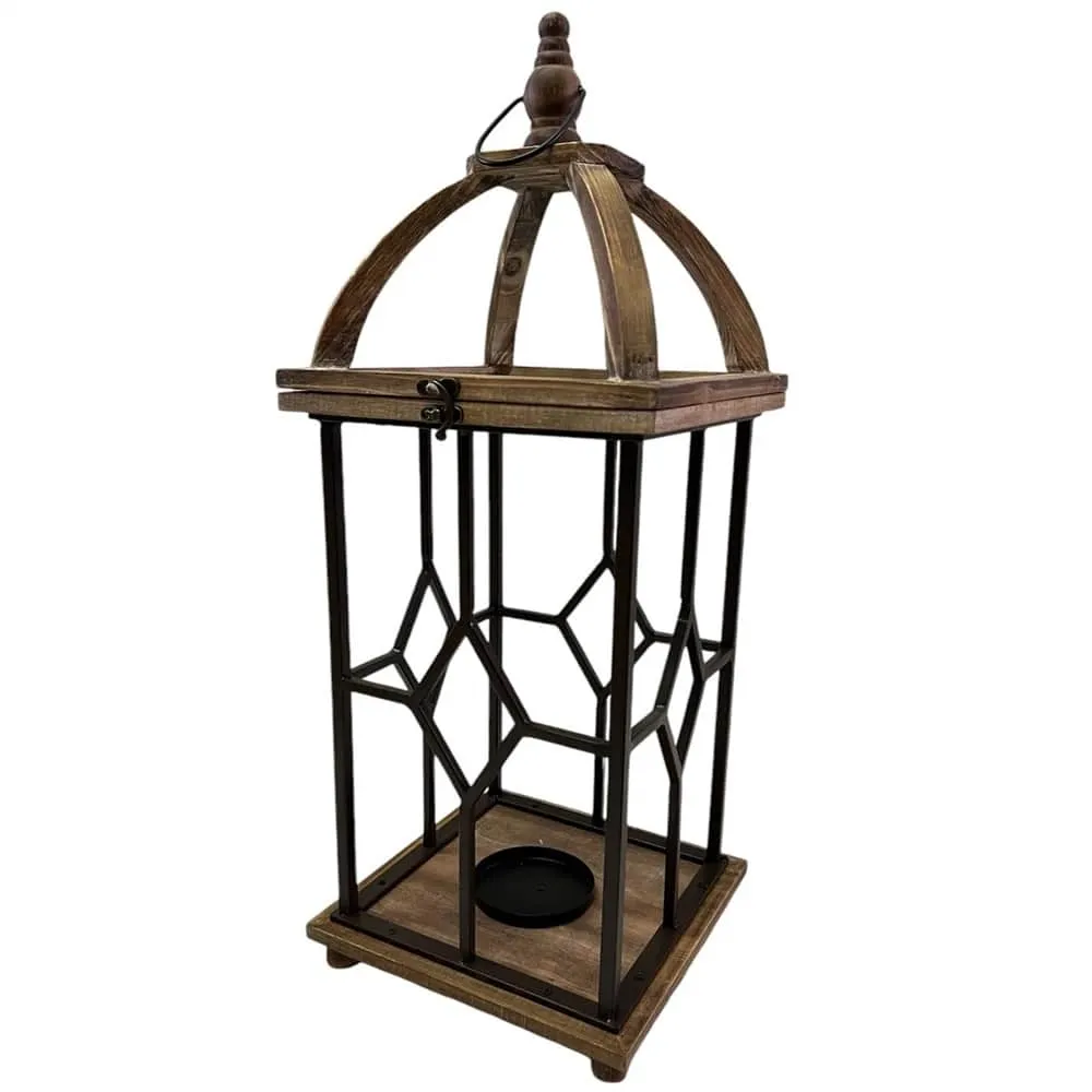 Střední lucerna dřevo kov 24 x 24 x 60,5 cm hnědá