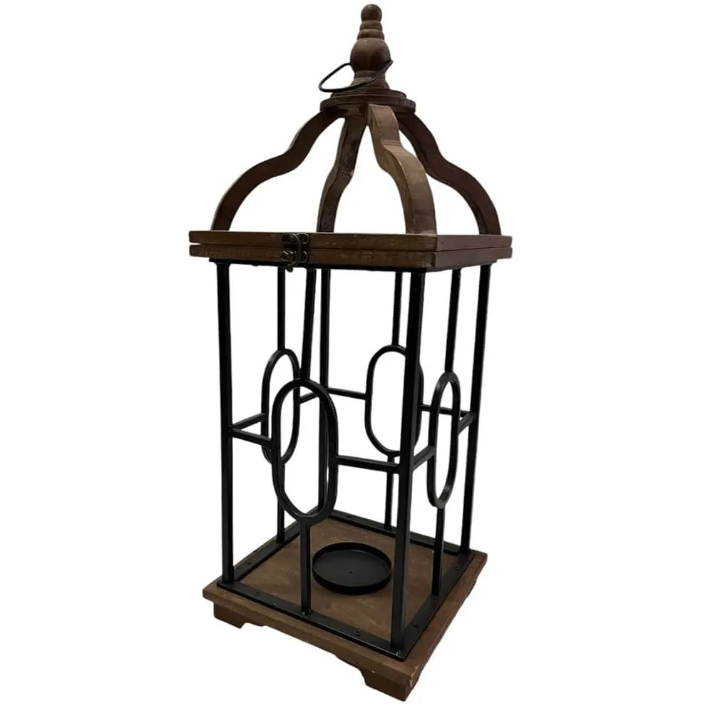 Střední lucerna dřevo kov 24 x 24 x 62 cm hnědá