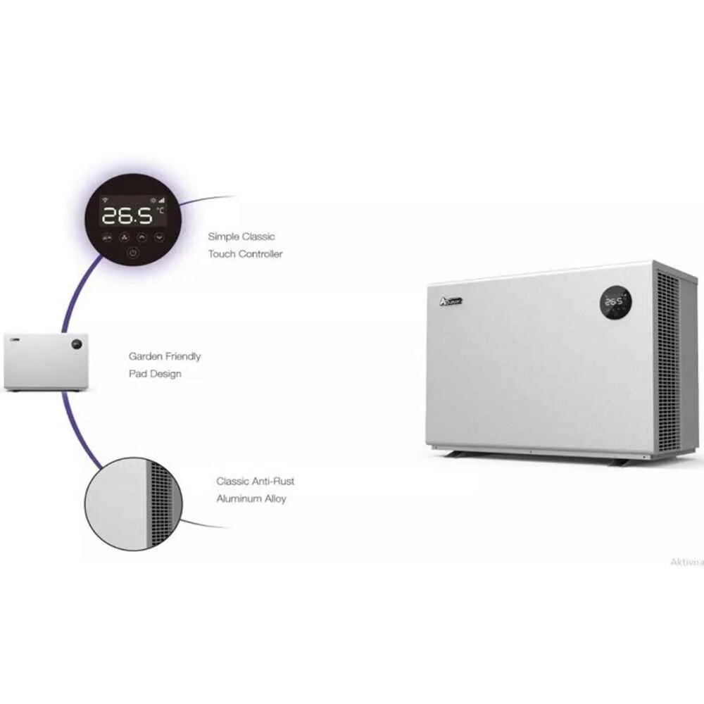 Tepelné čerpadlo Mr. Silence využívá invertorovou technologii desek, která udržuje stálou teplotu vody a umožňuje užívat si koupání od jara až do podzimu s výraznou úsporou energie. Díky pokročilému DC invertorovému systému Inverquark a optimalizované konstrukci vzduchového proudu dosahuje extrémně tichého provozu – pouze 43 dB, což je srovnatelné s běžnou lednicí.