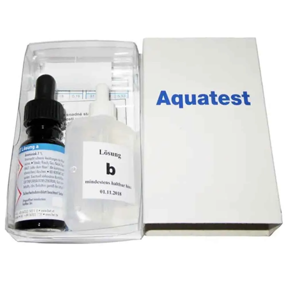 2. Kapněte 1-2 kapky testovacího roztoku A (hnědá lahvička) do vody, řádně protřepejte a počkejte až roztok zčervená (světle fialová).