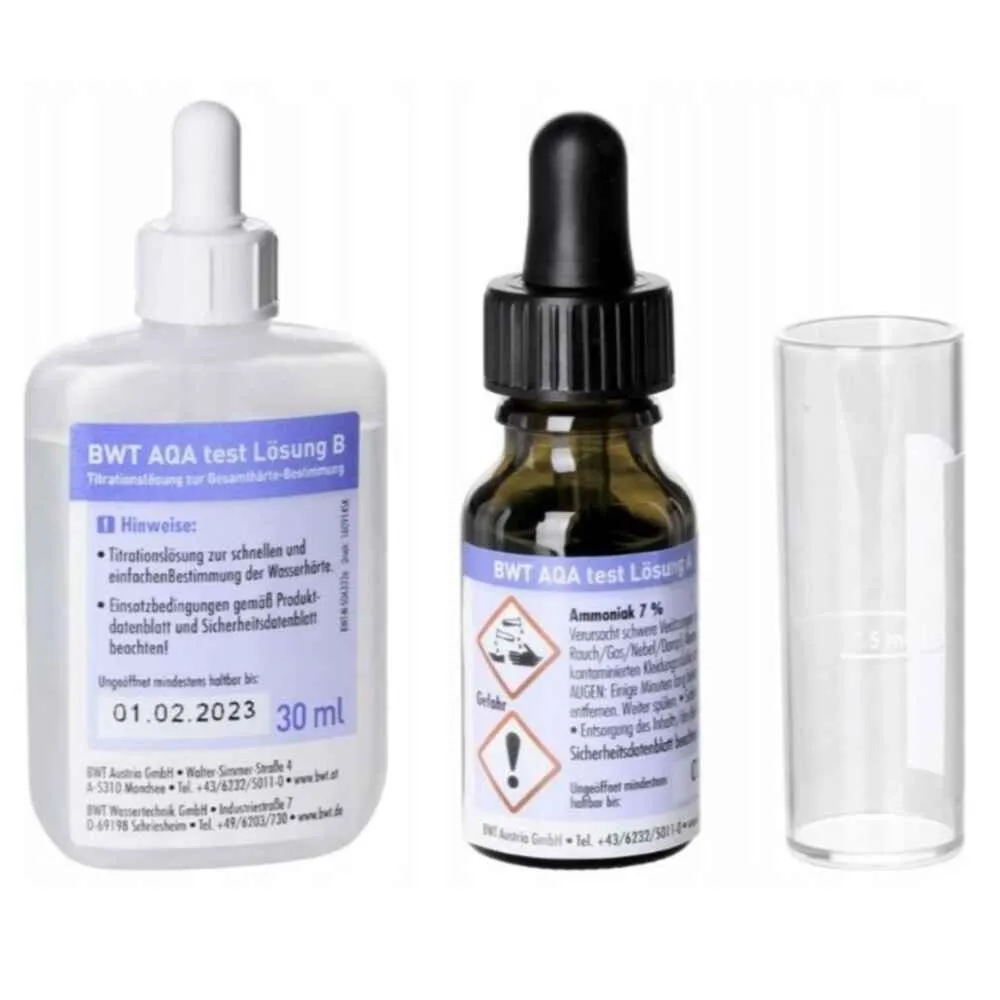 - Jedna kapka činidla Nr. 2 odpovídá 0,1 ° dH pro objem zkoušky 5 ml a 0,05 ° dH pro zkoušku 10 ml. 1,0° dH = 0,18 mmol / l 5,6° dH = 1,0 mmol / l