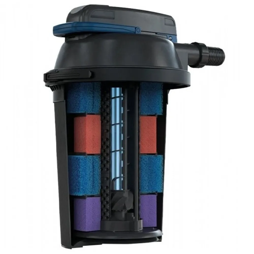 Tlakový filtr Oase FiltoClear 19 000 je moderní filtrační systém navržený pro jezírka o objemu až 19 m³. Díky kombinaci mechanického a biologického čištění s výkonnou UV-C lampou o výkonu 42 W zajišťuje čistou. Tlakový filtr Oase Filtroclear lze využít pro jezírka, karanténní nádrže i vodopády.