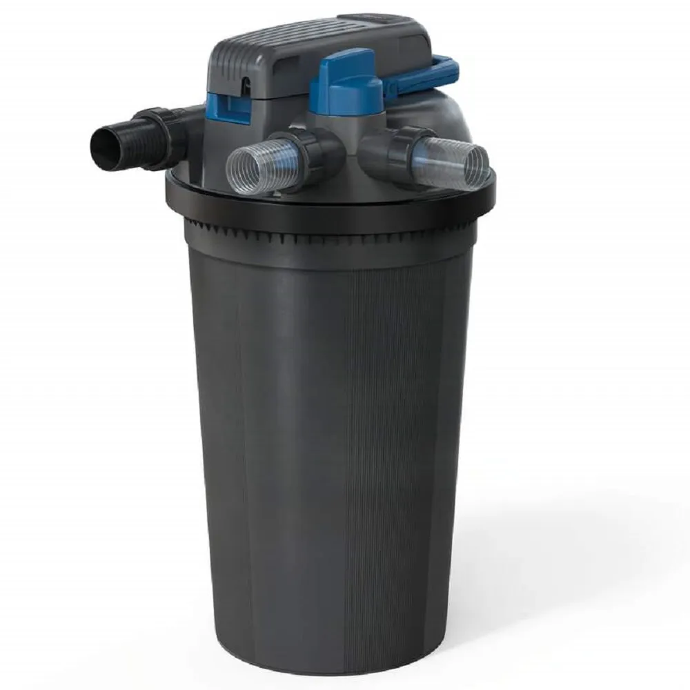 Tlakový filtr Oase FiltoClear 31 000 je moderní filtrační systém navržený pro jezírka o objemu až 31 m³. Díky kombinaci mechanického a biologického čištění s výkonnou UV-C lampou o výkonu 60 W zajišťuje čistou. Tlakový filtr Oase Filtroclear lze využít pro jezírka, karanténní nádrže i vodopády.