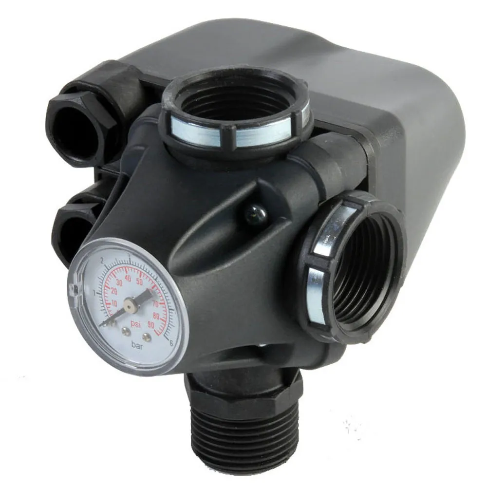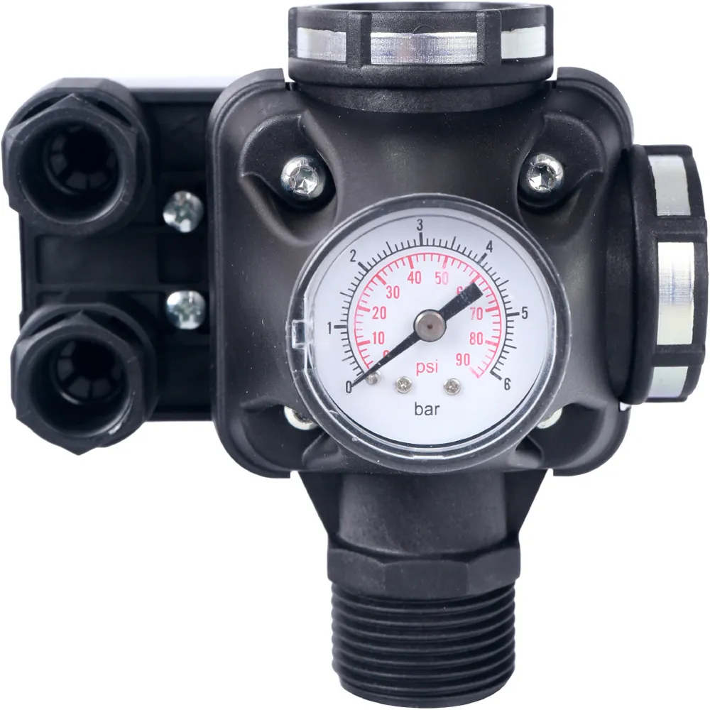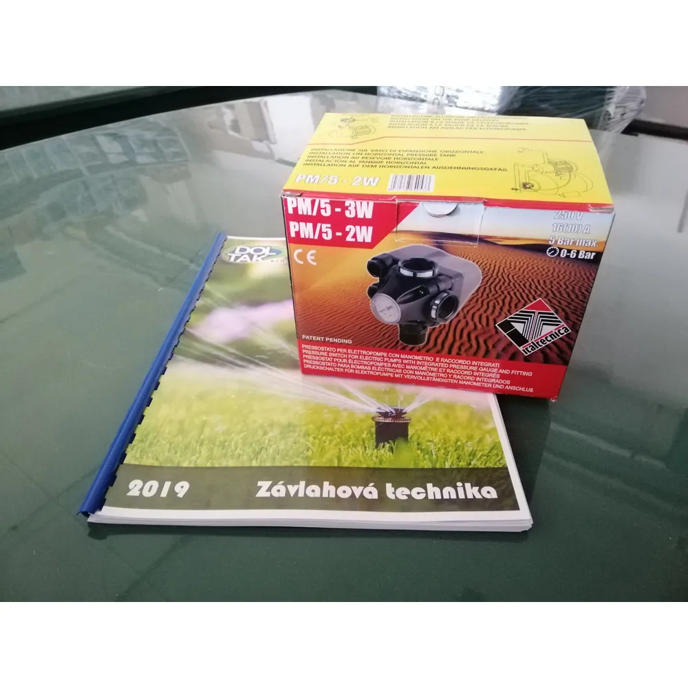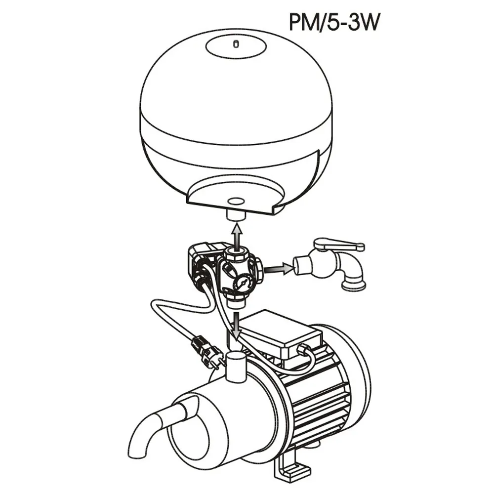 Tlakový spínač PM/5-3W s integrovaným manometrem a třícestnou armaturou je určený pro spolehlivé ovládání jednofázových čerpadel v domácích vodárnách a závlahových systémech. Udržuje konstantní tlak vody v systému, automaticky spíná čerpadlo při poklesu tlaku a vypíná jej po dosažení nastavené hodnoty.