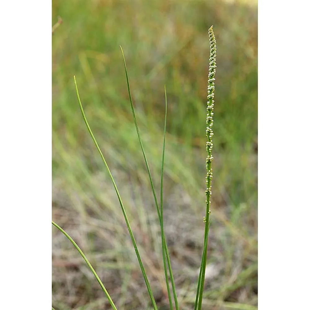 Vytrvalá rostlina se silným oddenkem, vzpřímené čárkovité listy, květ hrozen.