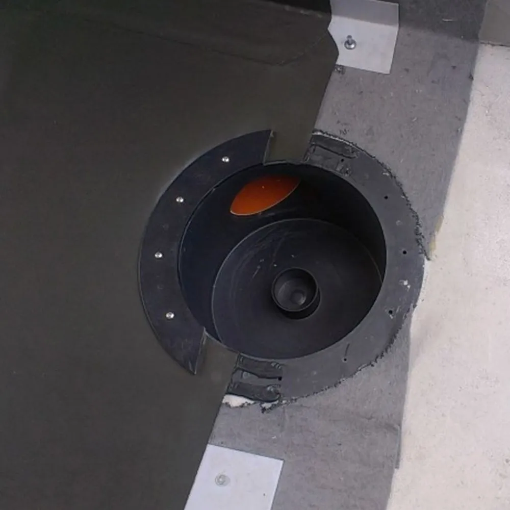 Montáž přes fóliovou přírubu s nerezovými vruty a připojení na PVC potrubí