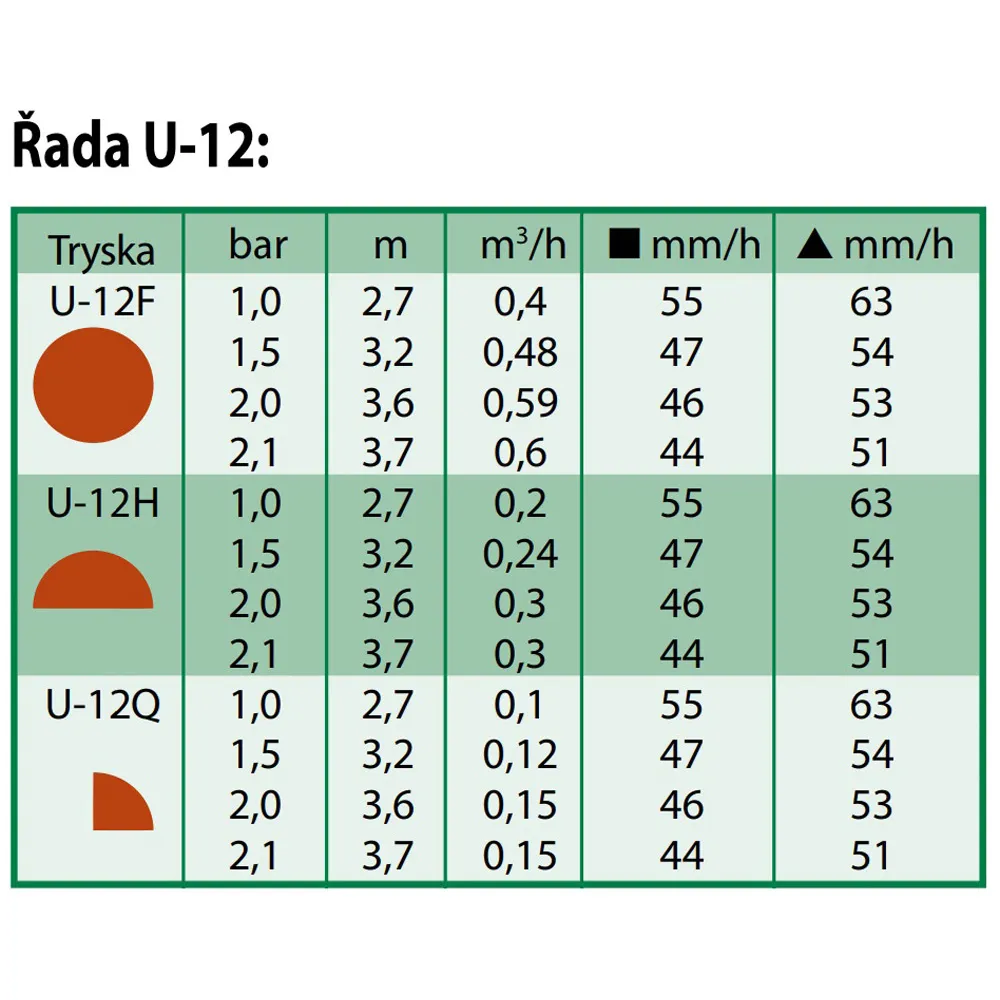 Tryska 12Q série U-12 90° pevný úhel, dostřik 2,7-3,7 m, tryska Rain Bird