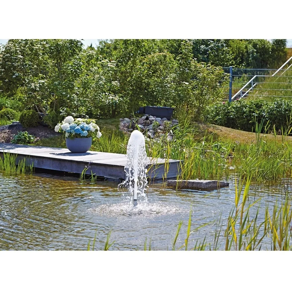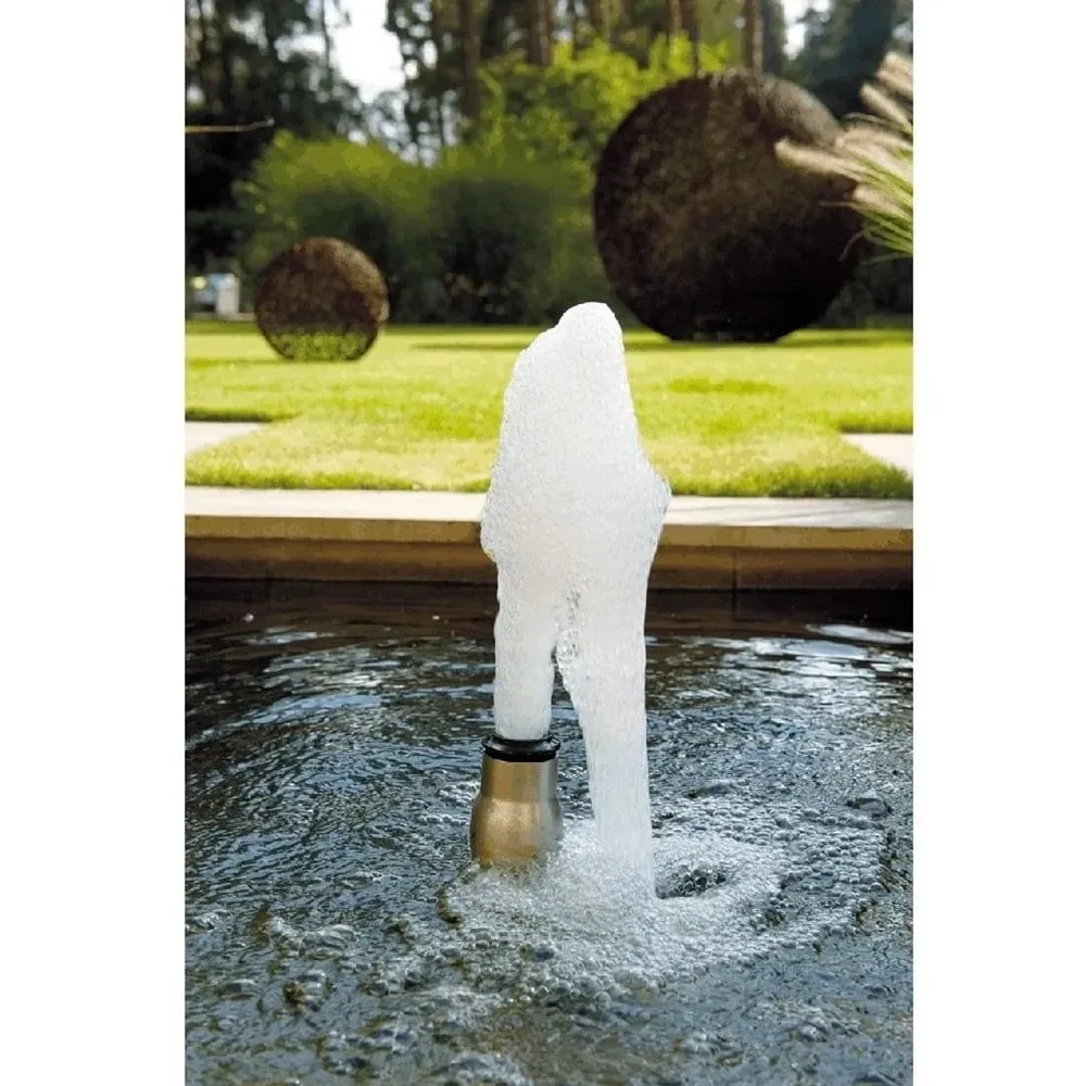 Je ideální pro okrajové části jezírek, kašny, menší fontány nebo vývěrové kameny. Díky konstrukci nezávislé na hladině vody zajišťuje stabilní výkon i při jejím kolísání a zachovává konzistentní efekt. Kombinace nerezové oceli a mosazi zaručuje dlouhou životnost a nízkou údržbu.