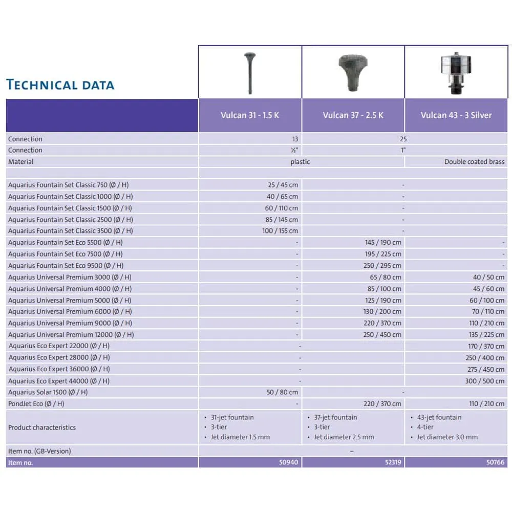 Fontánová tryska Vulkan 37 - 2,5 K na vodní hry s efektem vulkánu (vícepatrová tryska s více prameny) disponuje 37 paprsky vody o průměru 2,5 mm. Paprsky vytvářejí nádherný efekt dopadající vody.