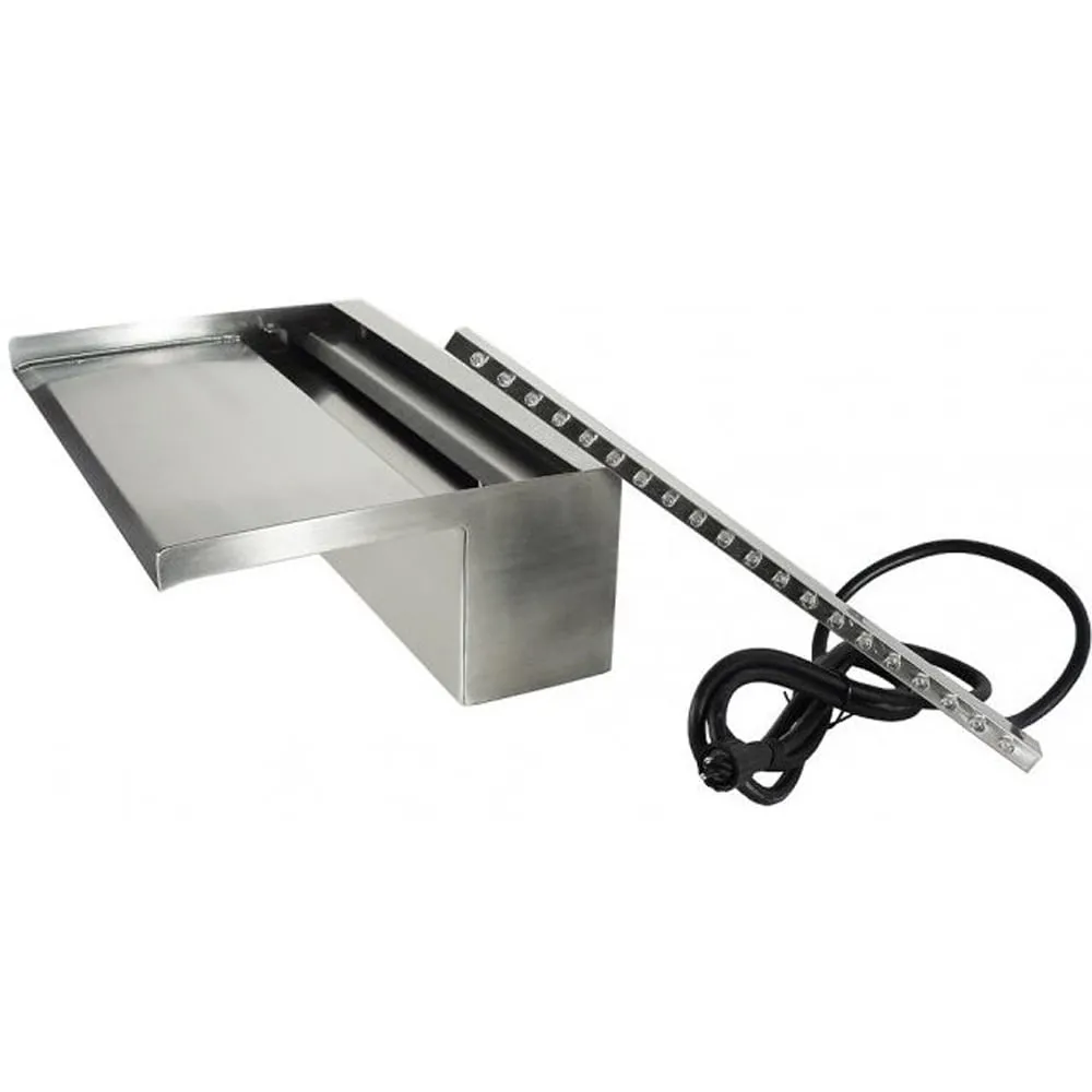 Vodopád Niagara z nerezové ocele s dlouhým odtokem. Nerezová ocel s označením 316 L je odolná vůči chlóru a soli. Použití je tedy možné i k bazénům.