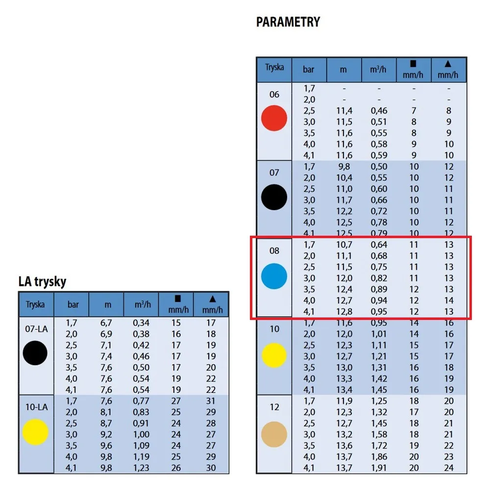Balení obsahuje postřikovač a standardní trysku č. 08 s poloměrem dostřiku 10,7 - 12,8 m, která je již předinstalovaná v postřikovači.• Snadná výměna trysky bez použití nástroje.