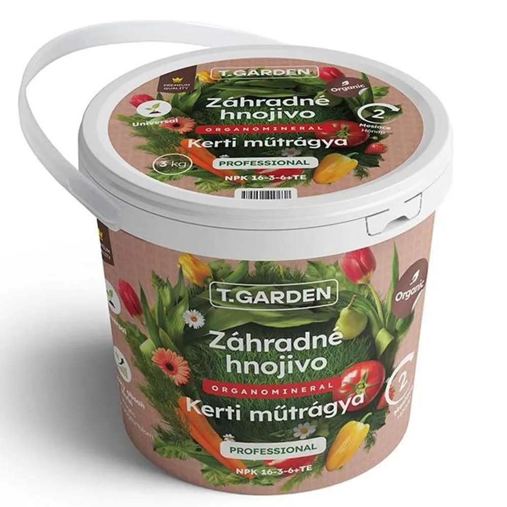 Univerzální zahradní hnojivo T.Garden 16-3-6 je organo minerální hnojivo určené pro jarní start celé zahrady. Díky vysokému obsahu dusíku, bohaté organické složce a přírodnímu minerálu Polyhalit podporuje rychlý růst zeleniny, ovoce, okrasných rostlin i trávníků.