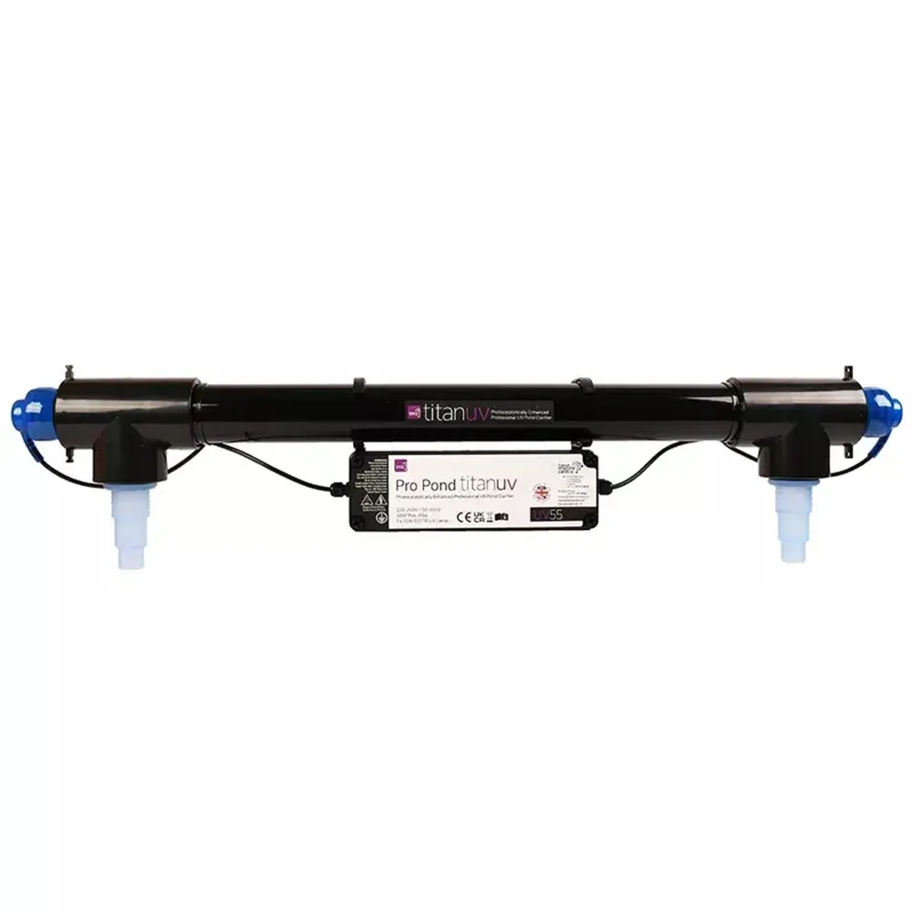 TMC Pro Pond TitanUV 55 W je vysoce výkonná UV-C lampa určená k odstranění zelené vody a zlepšení čirosti vody v jezírkách do objemu až 68 m³. Při průtoku až 20000 l/h pracuje s pokročilou UV technologií, která produkuje hydroxylové radikály.