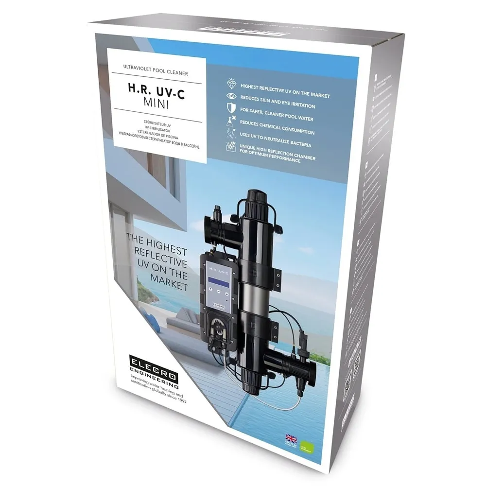 UV-C sterilizátor Elecro H.R. UV-C 55 W představuje špičkové řešení pro vířivky a malé bazény do 30 m³, kde zajišťuje účinnou dezinfekci vody bez nutnosti nadměrného používání chemie. Díky extrémně reflexní komoře E-PTFE, která nabízí až 95% odraz UV záření, dochází k maximálnímu vystavení mikroorganismů UV-C paprskům – a tedy k dramatickému zvýšení účinnosti sterilizace.