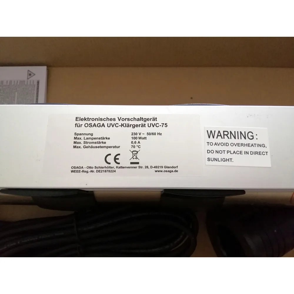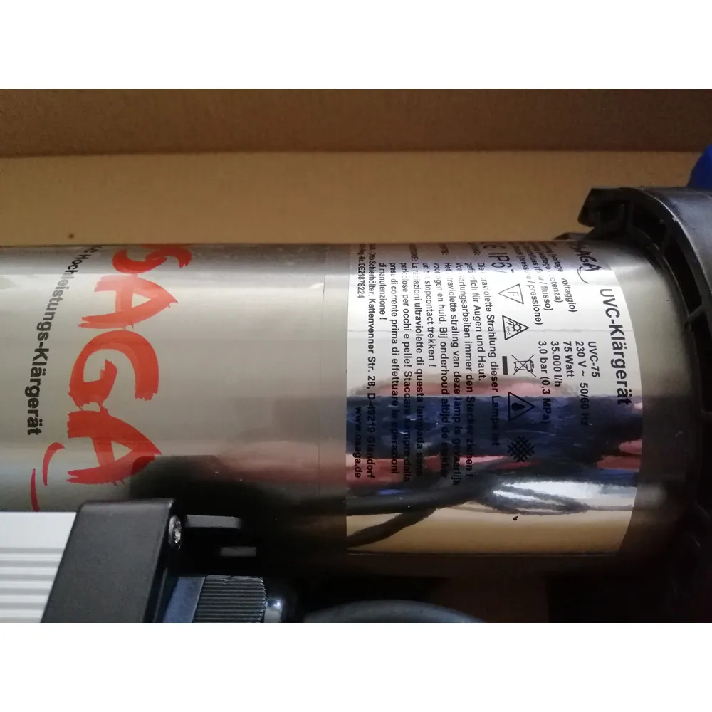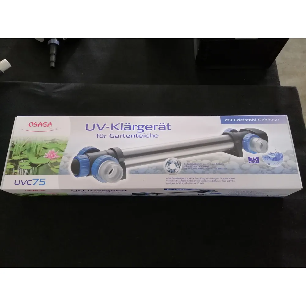 Nerezová UV lampa Osaga s UVC výkonem 75 W je vhodná pro jezírka objemu až 75 m3. Nerezový válec lampy zvyšuje účinnost záření (odrážení UV záření uvnitř válce).