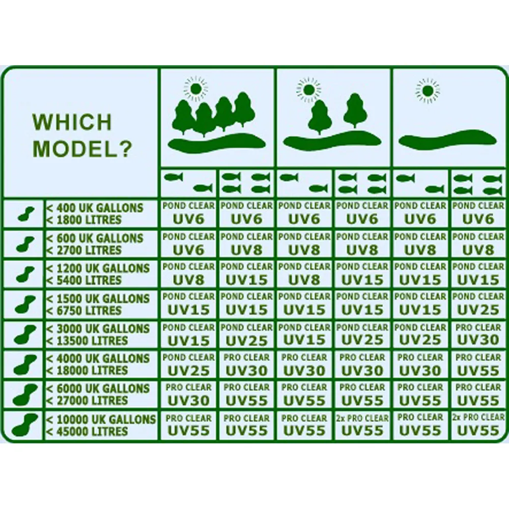 Platí pravidlo: čím vyšší výkon UV zářiče (W), tím vyšší stupeň účinnosti.