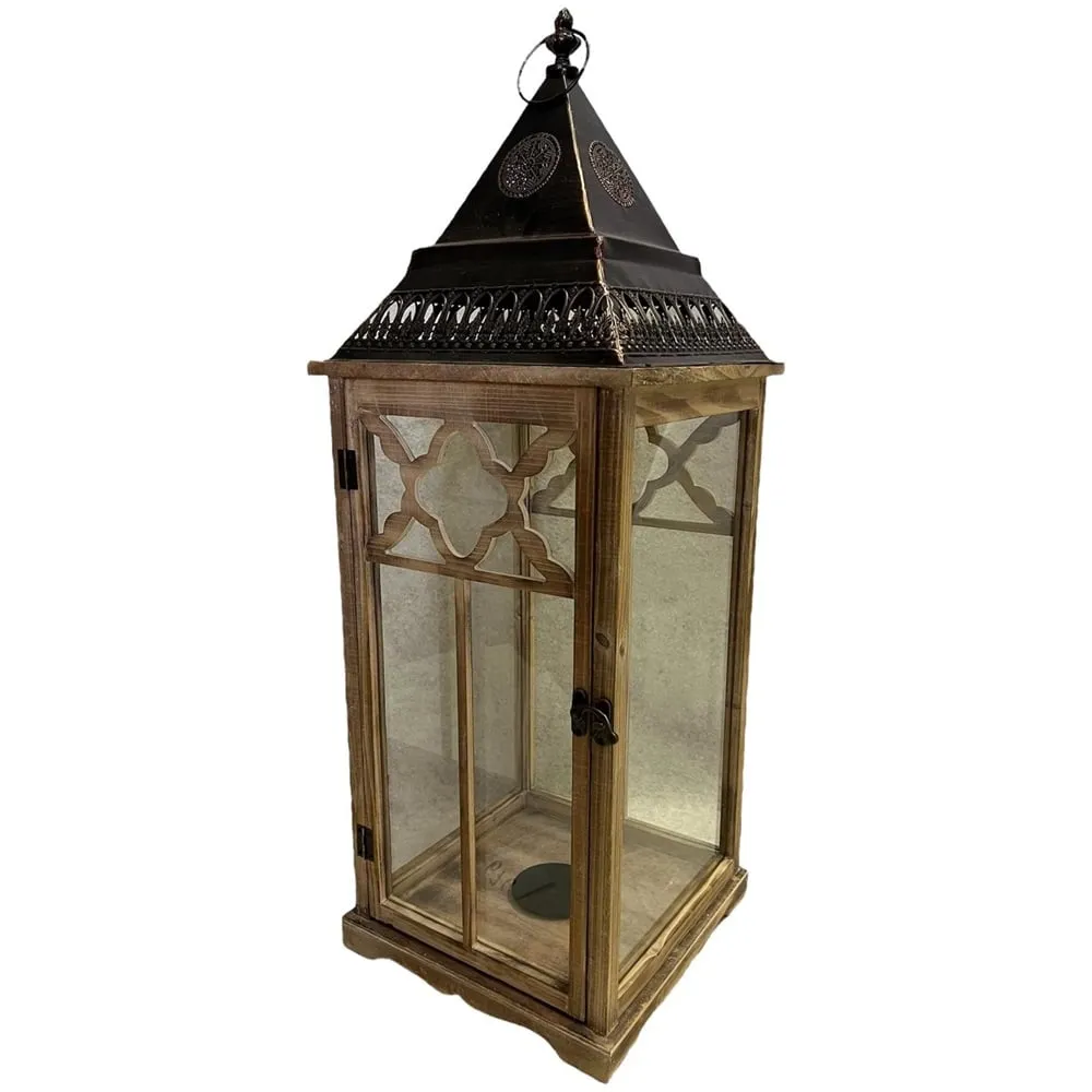Velká dřevěná lucerna 31,5 x 31,5 x 86 cm hnědá