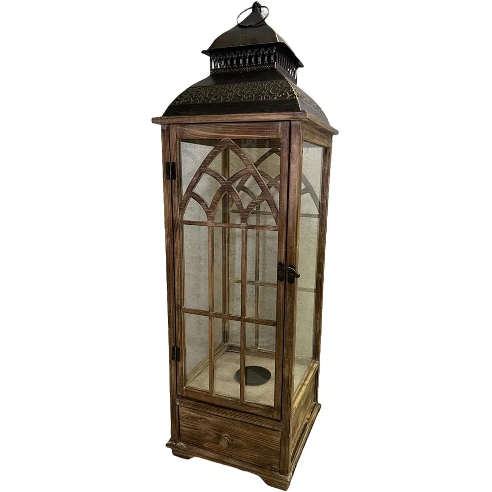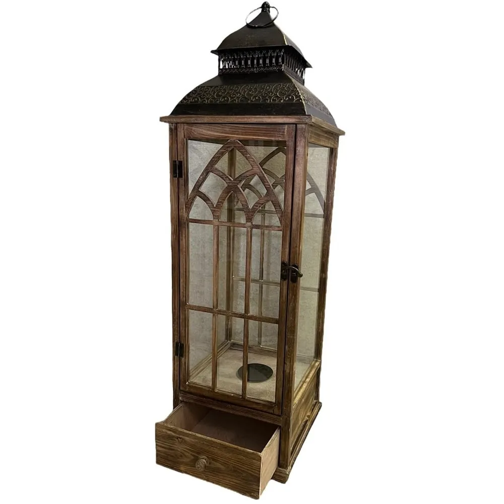 Velká dřevěná lucerna s přihrádkou 31,5 x 31,5 x 101 cm hnědá