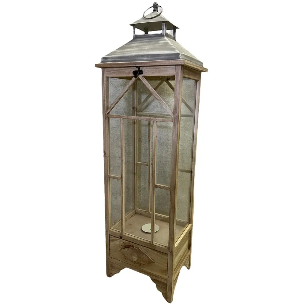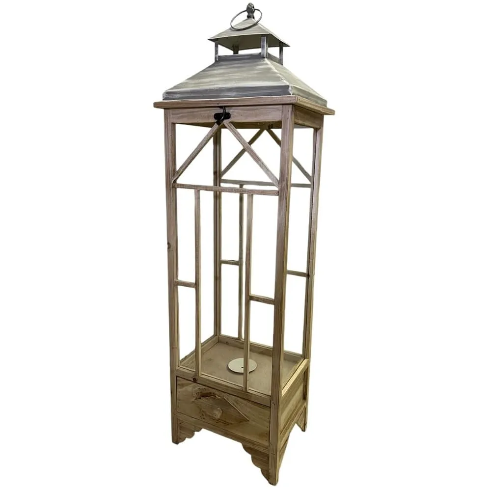 Velká dřevěná lucerna s přihrádkou 33 x 26 x 107 cm světle hnědá