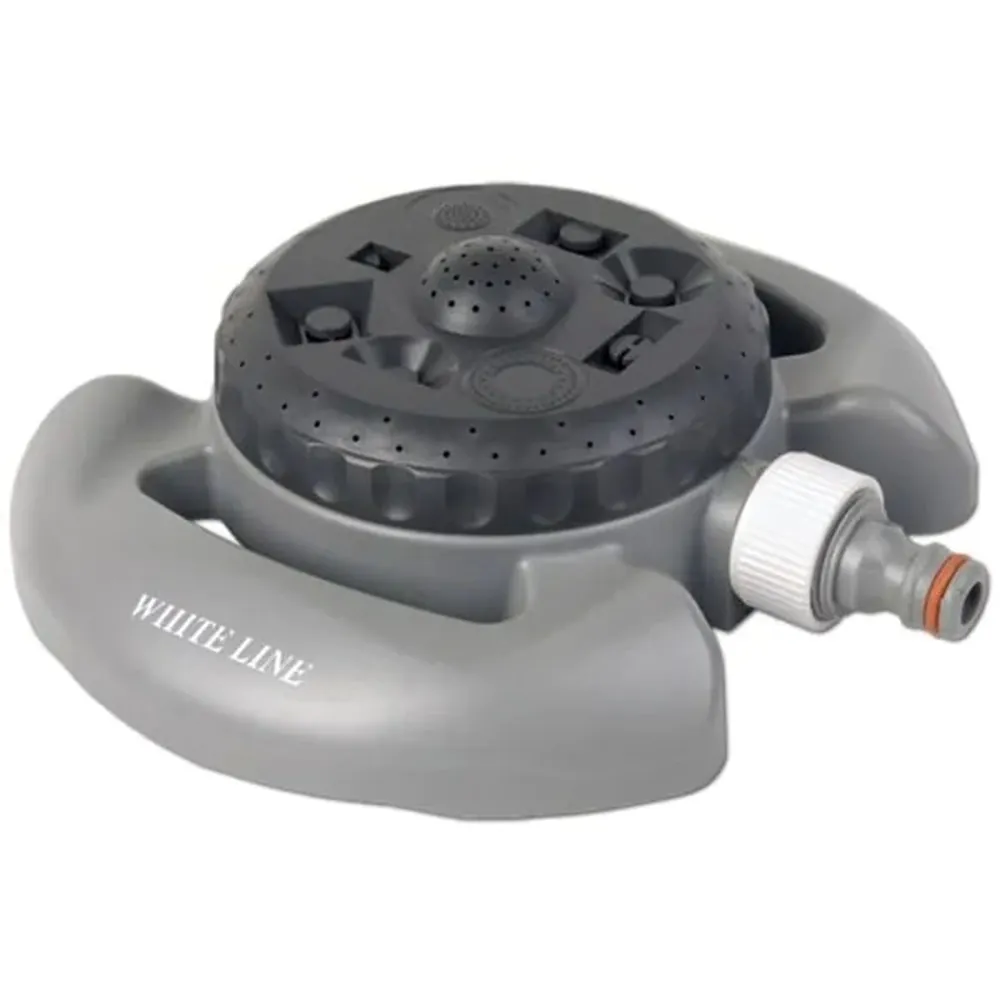 Zahradní postřikovač WHITE LINE 8-funkční je univerzální zavlažovač s robustní plastovou základnou, který nabízí možnost výběru až z osmi typů postřikování. Pomocí praktického otočného knoflíku lze snadno zvolit zavlažovací režim přesně podle potřeby