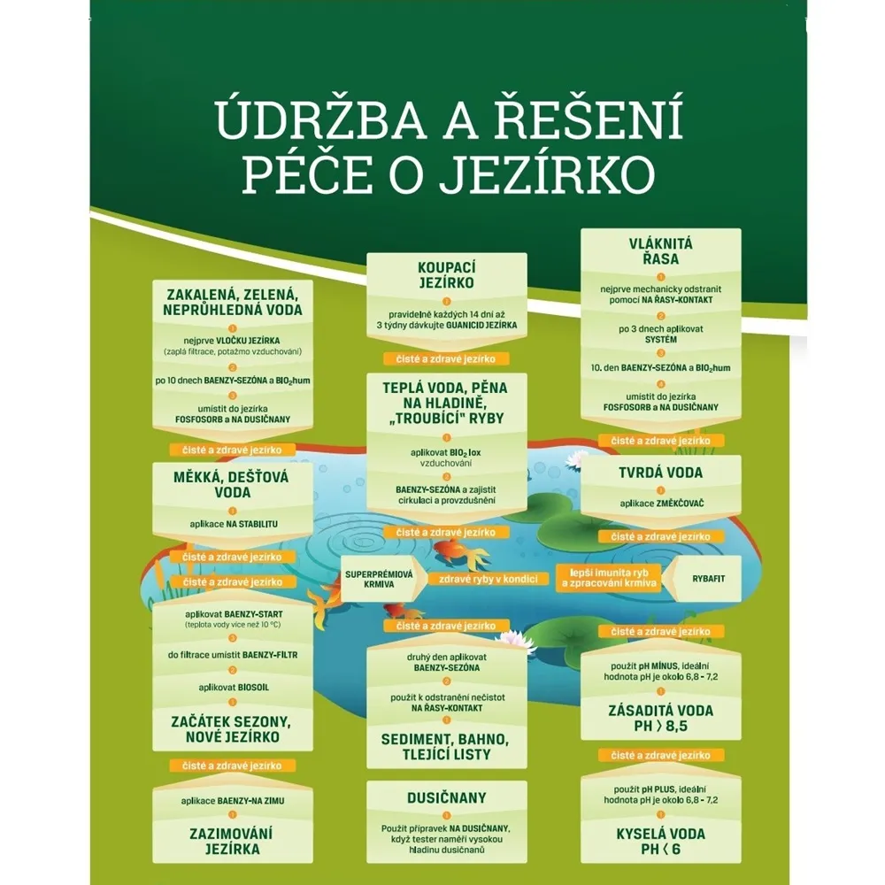 Rybafit zlepšuje kondici ryb po zimě i při přípravě na přezimování a pomáhá udržet zdravé prostředí v jezírku po celý rok.