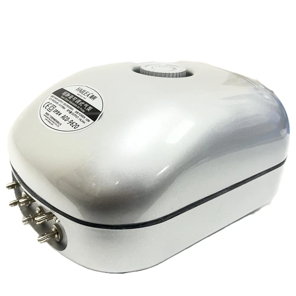 Membránový kompresor Hailea ACO 9620 slouží pro účinné provzdušnění vody v jezírkách a nádržích do 8 m³. Díky průtoku 14 l/min a pracovnímu tlaku 0,15 bar zajišťuje dostatek kyslíku pro stabilní prostředí ve vodě.