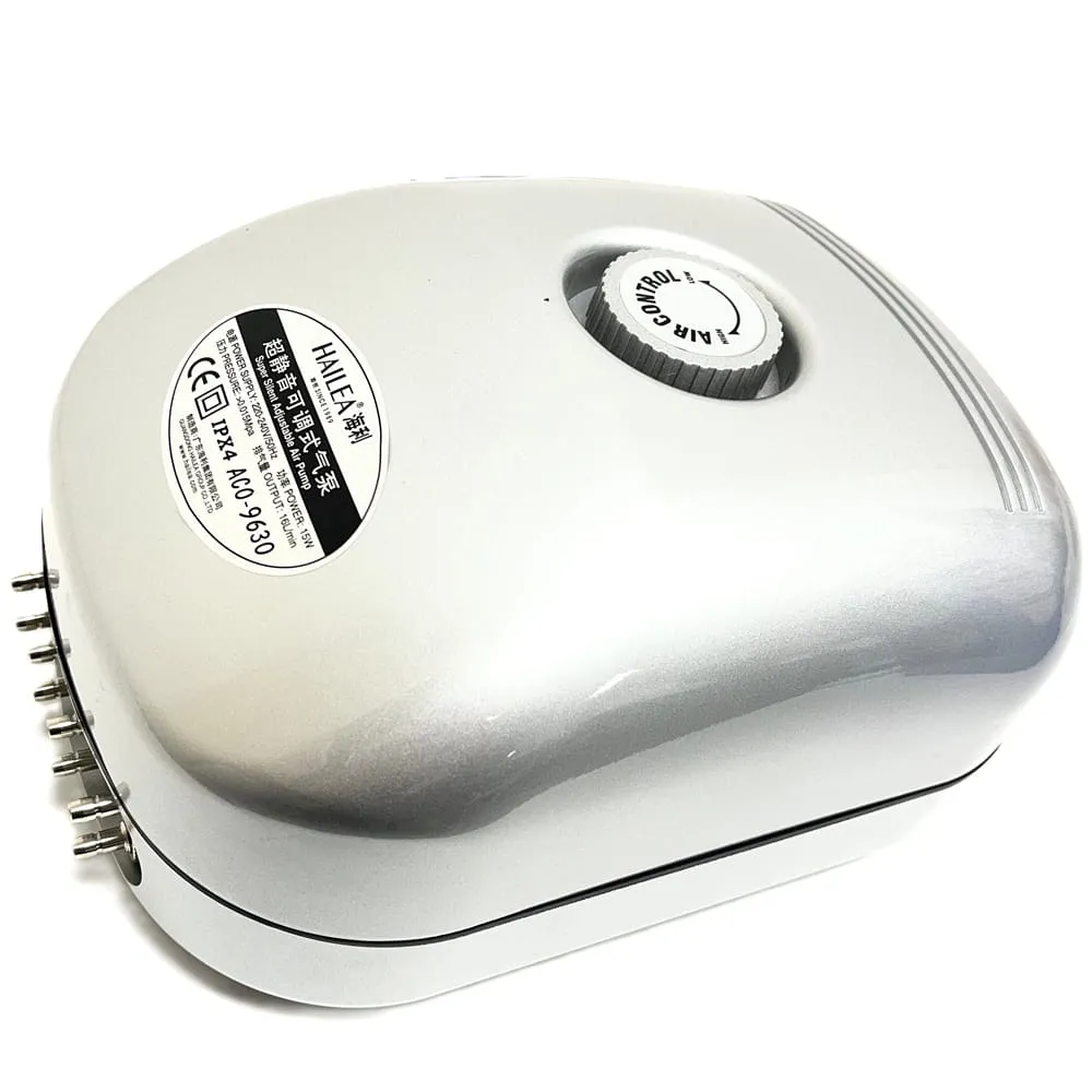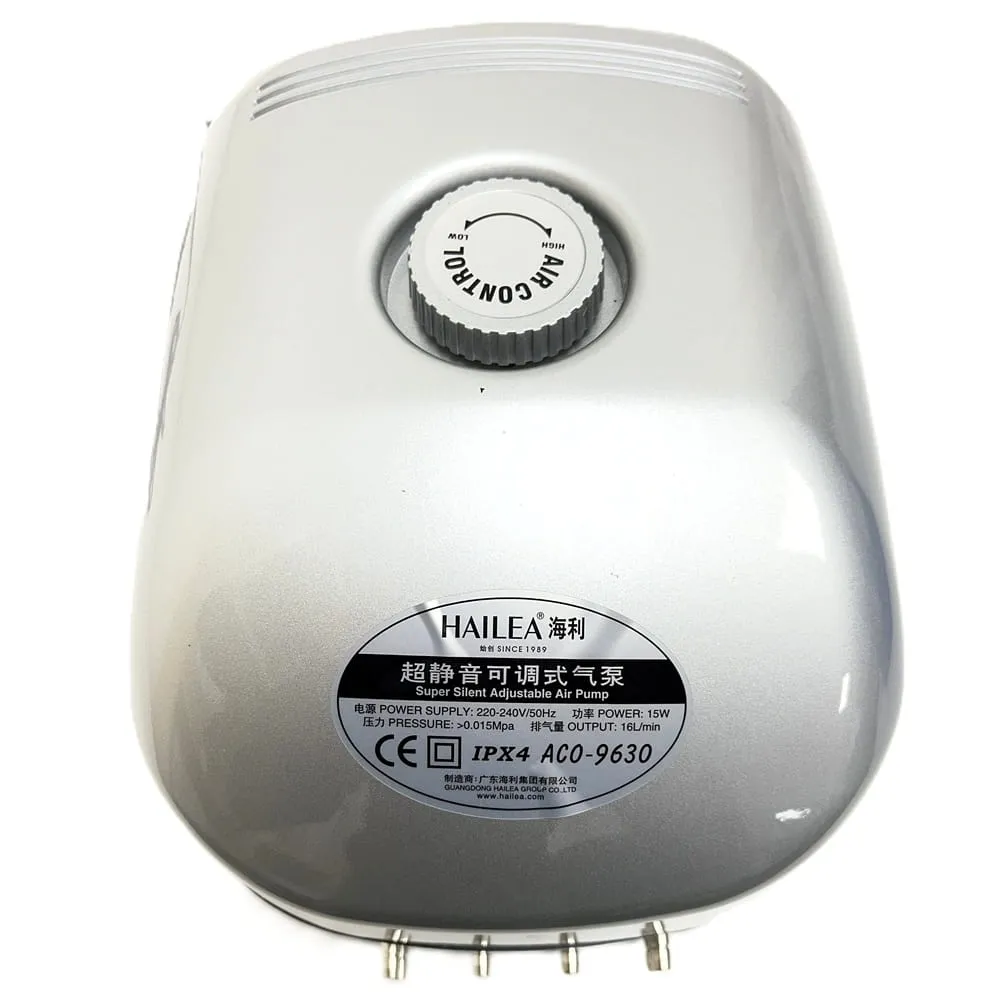 Membránový kompresor Hailea ACO 9630 slouží pro účinné provzdušnění vody v jezírkách a nádržích do 10 m³. Díky průtoku 16 l/min a pracovnímu tlaku 0,15 bar zajišťuje dostatek kyslíku pro stabilní prostředí ve vodě.