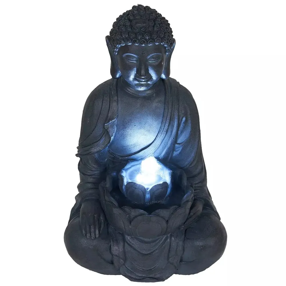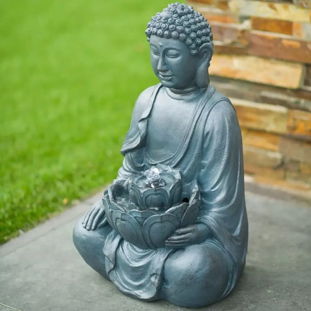 Fontánový set je vhodný pro umístění na zahradu, terasu nebo balkon, kde vytváří klidnou atmosféru díky jemně proudící vodě v kombinaci se zenovým motivem. Voda decentně cirkuluje v uzavřeném okruhu a vytváří tak uklidňující dojem, který ladí s designem meditující postavy.