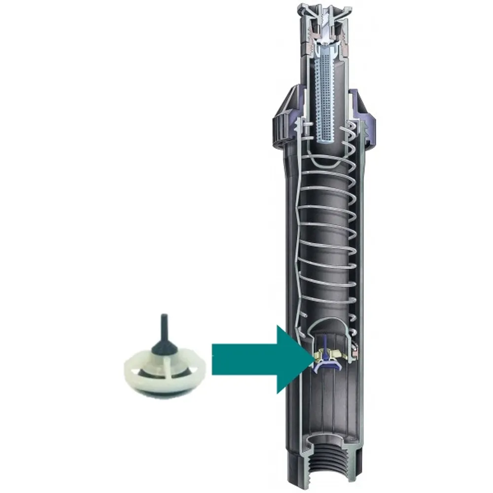 Zpětný ventil UNI SAM KIT udrží převýšení až 1,5 m a zabrání tak vytekání vody z nejníže položeného postřikovače v závlahovém systému.